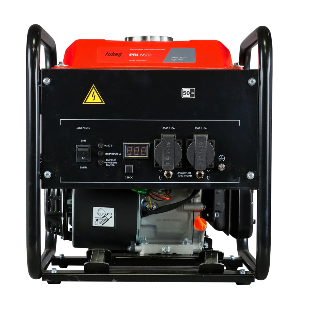 FUBAG PRI 5500 весит 31,5 кг, защищен по классу IP23 и имеет компактные размеры 485 x 480 x 495 мм. Асинхронный альтернатор, красно-черный корпус, простота обслуживания и эксплуатация при температуре от -5°С до +40°С делают данную модель отличным решением для использования в различных условиях.